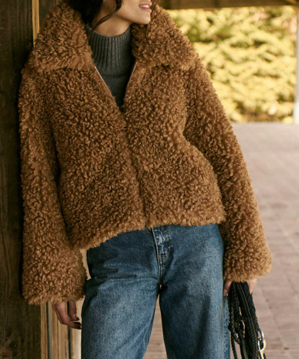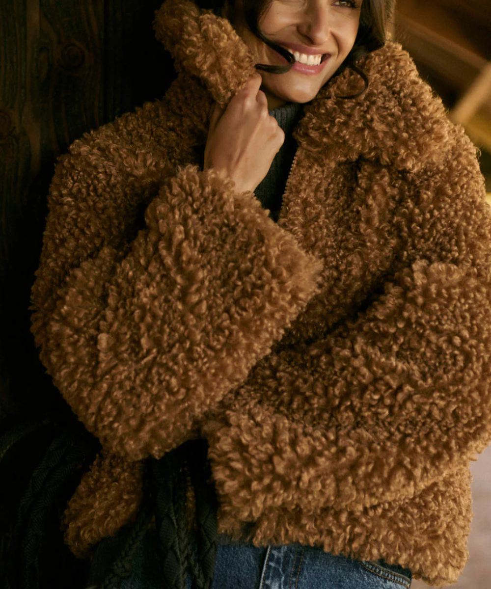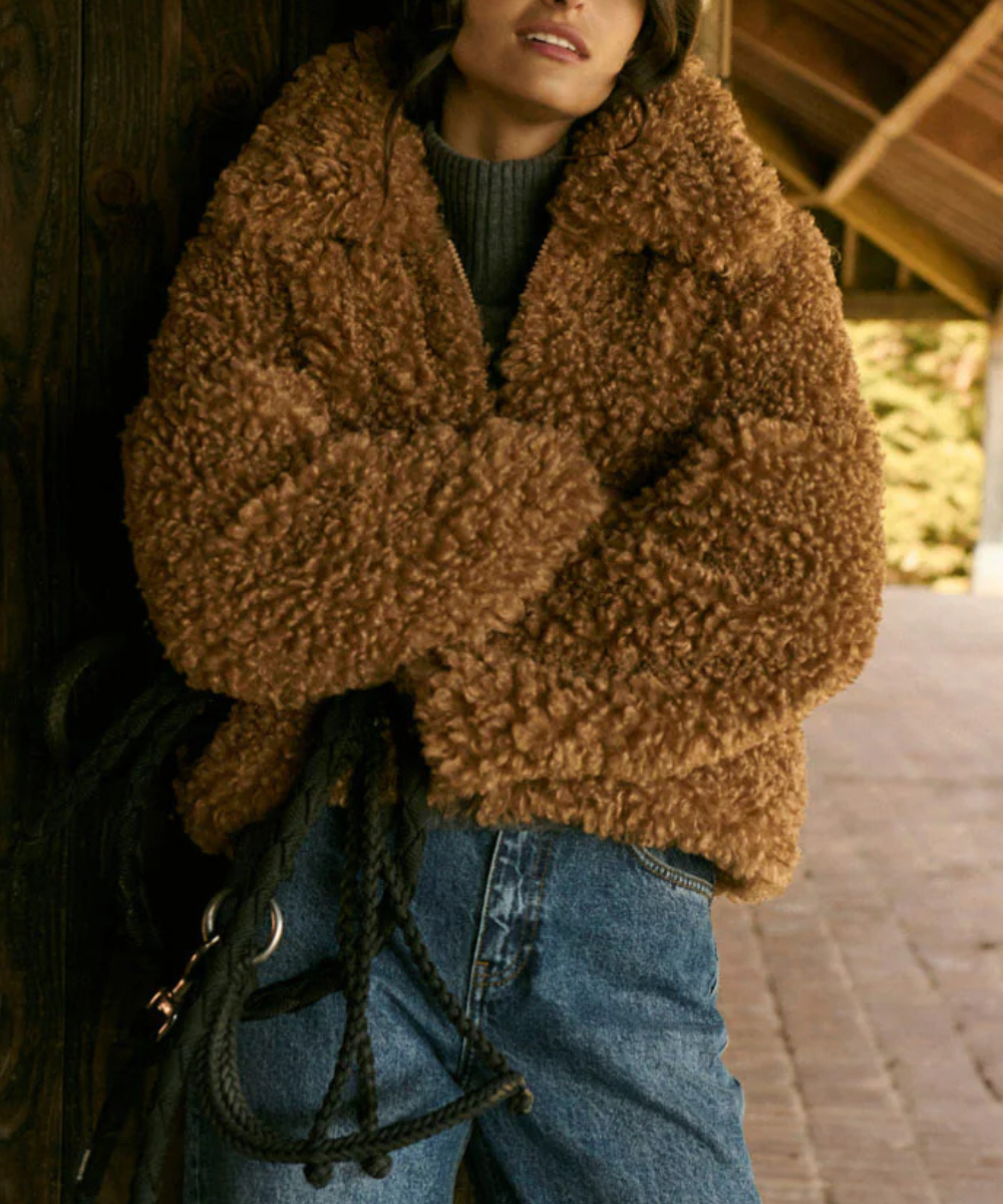 Si buscas una prenda versátil, cálida y con un toque retro moderno, el abrigo Otis es la elección perfecta para esta temporada. Diseñado en una suave piel sintética de textura rizada, este abrigo se ha convertido en un imprescindible para quienes desean combinar estilo, comodidad y funcionalidad sin renunciar a un acabado elegante. Su color marrón cálido y su diseño envolvente lo convierten en una pieza clave del armario, ideal para elevar tanto outfits casuales como looks más sofisticados.