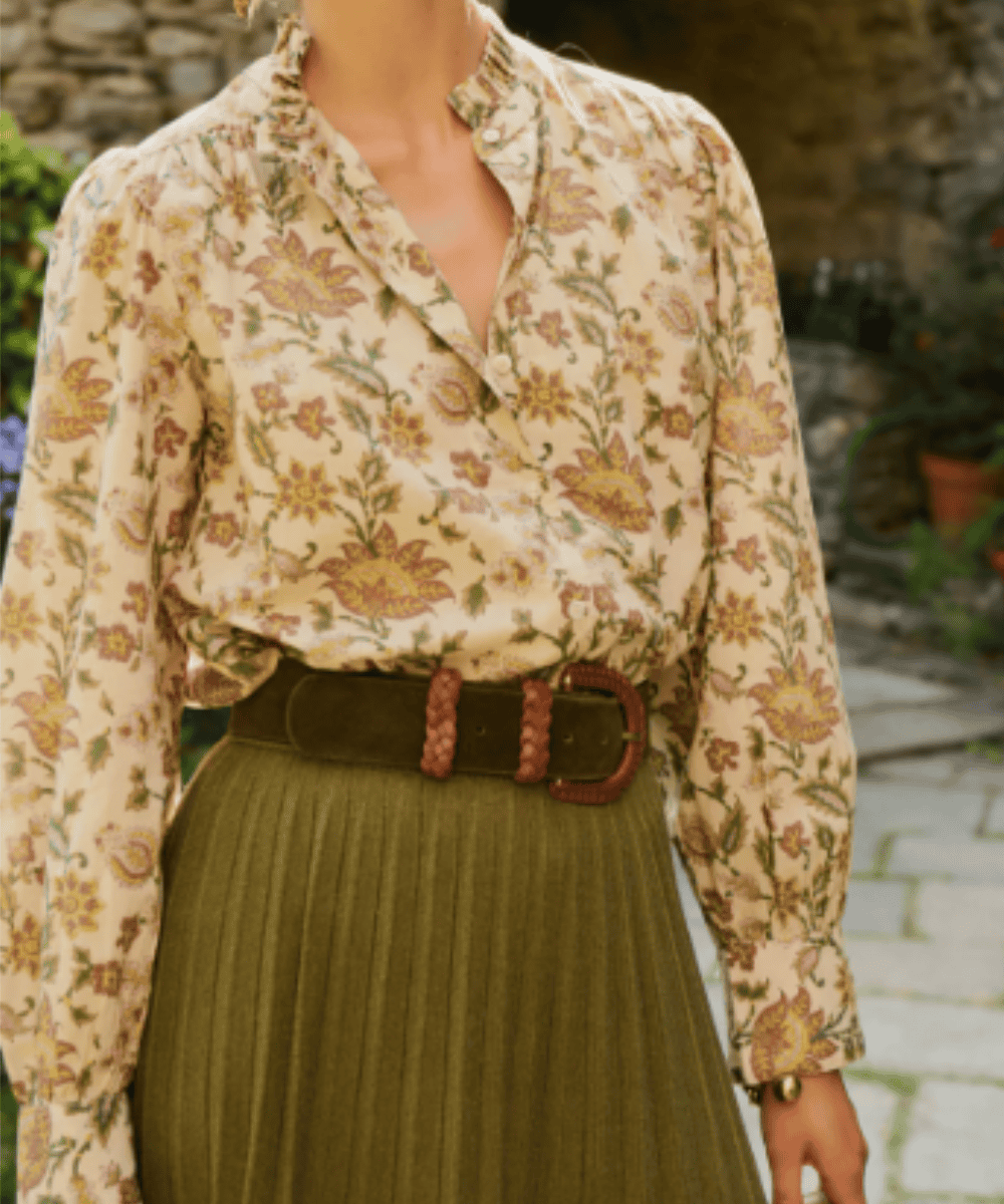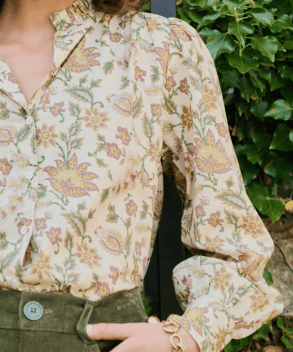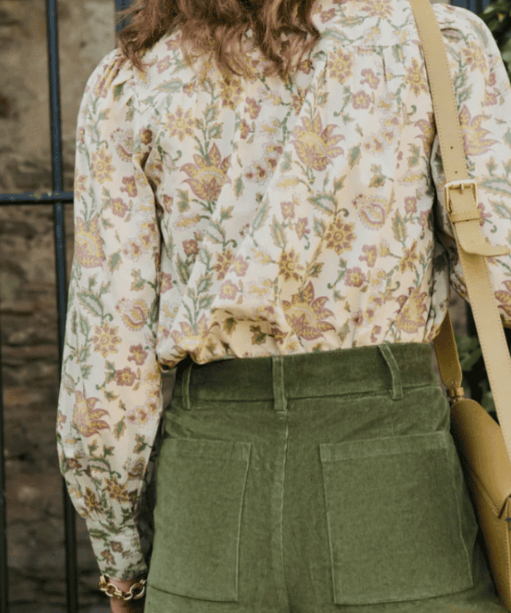 El estampado floral, con motivos botánicos en tonos suaves de mostaza, verde y malva, transmite una sensación de naturaleza y armonía. Es perfecta para quienes disfrutan de los detalles sutiles y los tejidos que cuentan historias. Combinada con una falda plisada, unos jeans de corte alto o un pantalón de lino, la Camisa Tabatha Petite Mendigote se adapta fácilmente a distintos estilos: desde un look casual chic hasta un conjunto más formal y pulido.