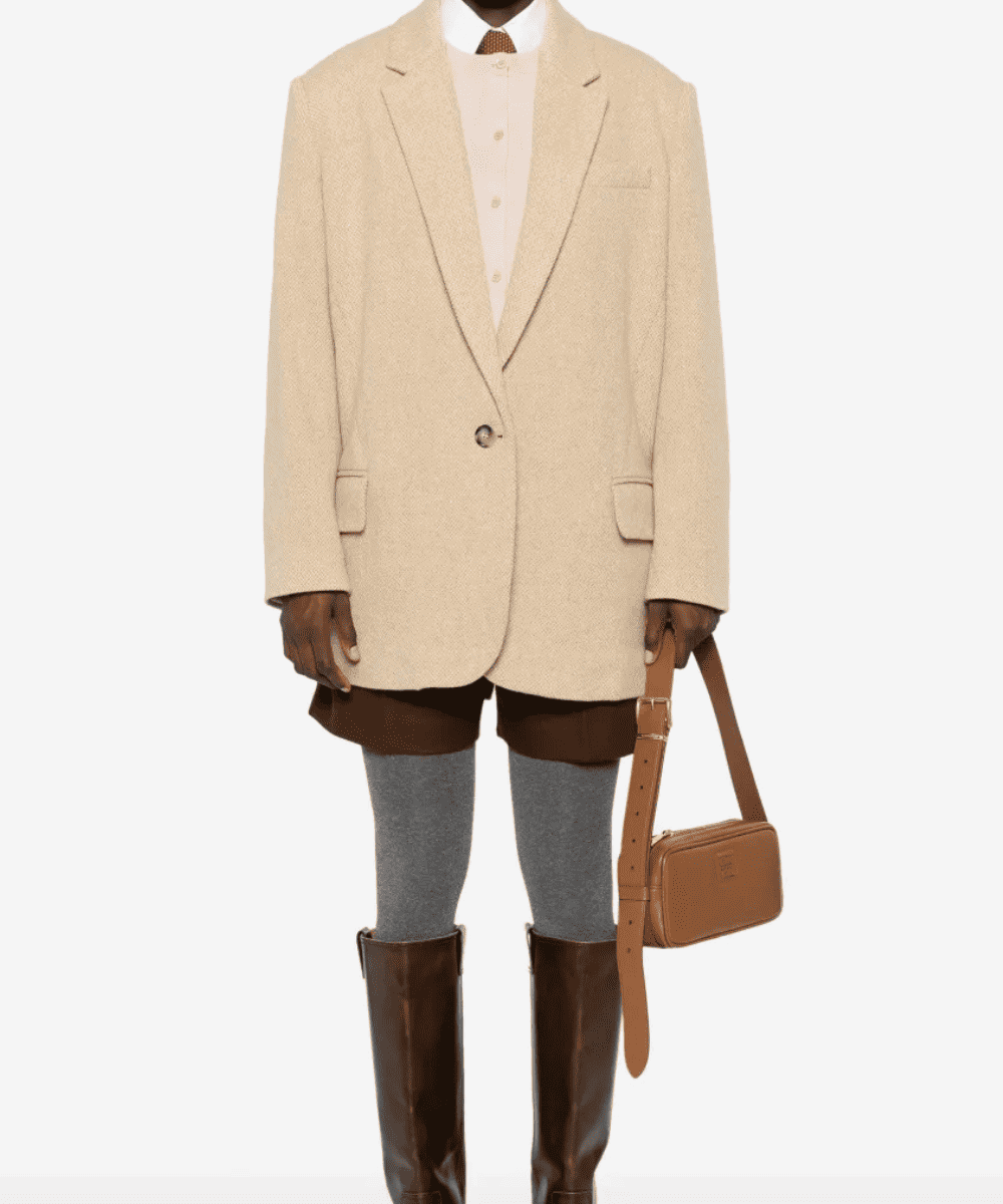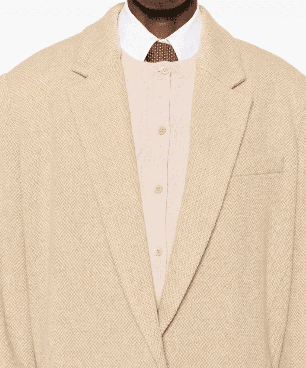 El forro parcial responde al enfoque contemporáneo de la firma, que busca prendas ligeras, fáciles de llevar y adaptables a diferentes estaciones. La abertura trasera estilo americano, junto con el dobladillo recto, garantiza un movimiento natural y una caída impecable, logrando que el blazer acompañe el cuerpo sin imponerlo.