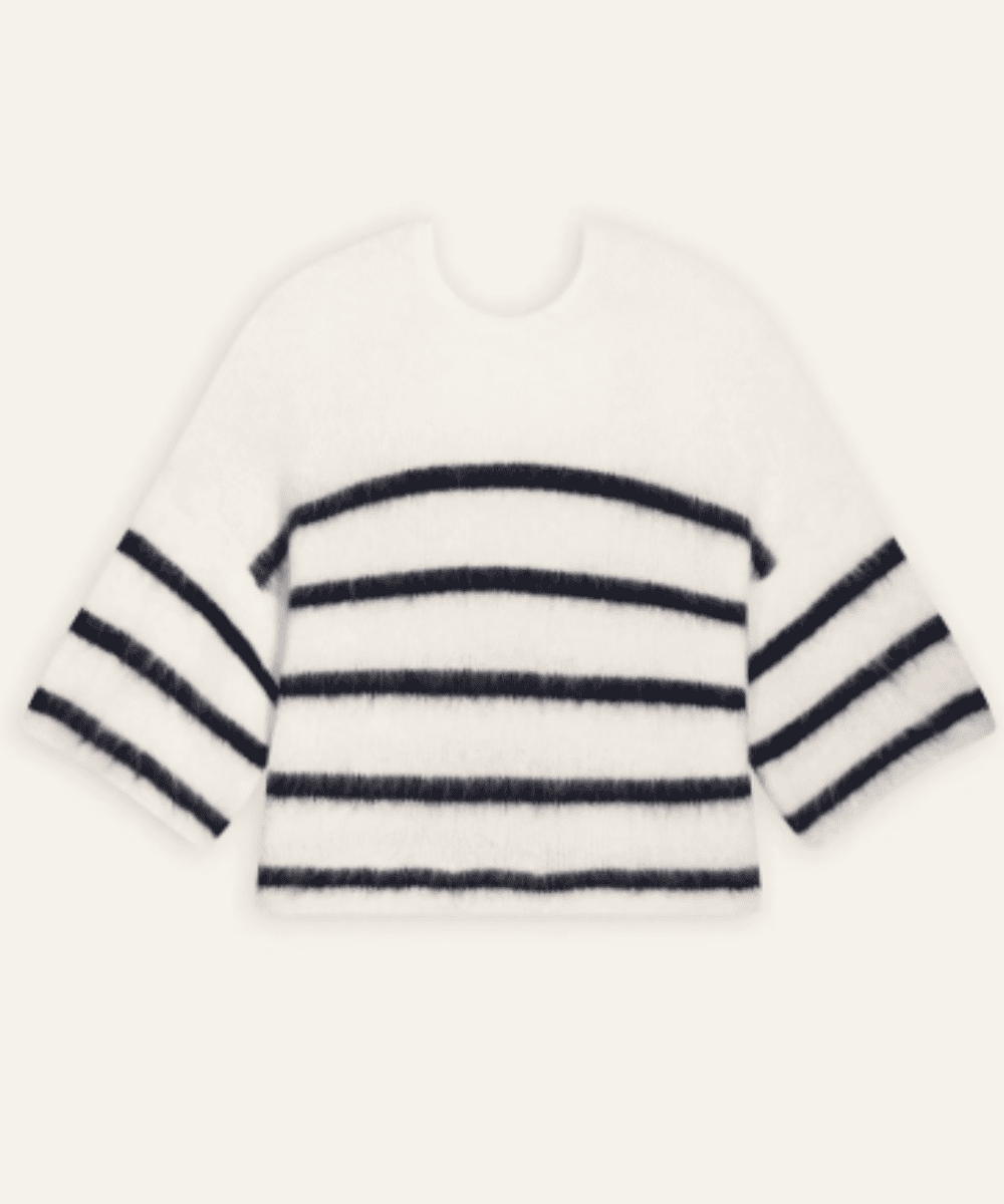 Descubre la calidez y el estilo inconfundible del Jersey Biguel Ecru Bash, una prenda que reinterpreta el clásico motivo marinero francés con el toque boho-chic y la ligereza de la marca ba&sh. Este jersey no es solo un básico de rayas; es una pieza de declaración que fusiona la comodidad de un tejido suave y esponjoso con una silueta effortlessly chic. El Jersey Biguel Ecru Bash, en su combinación de color crudo (écru) y rayas azul marino, evoca inmediatamente la elegancia de la costa francesa, pero con una modernidad que lo hace perfecto para cualquier entorno.
