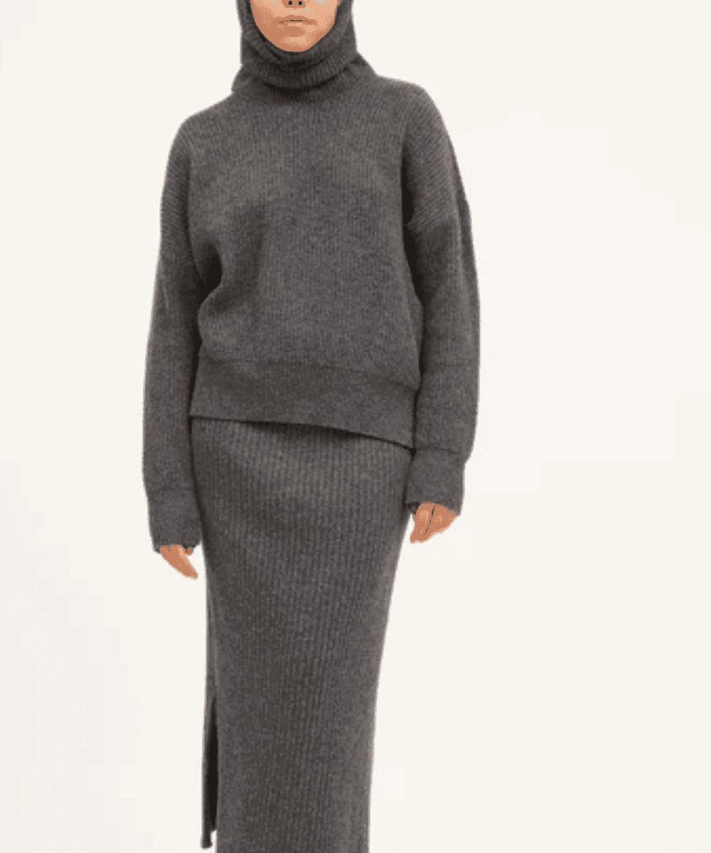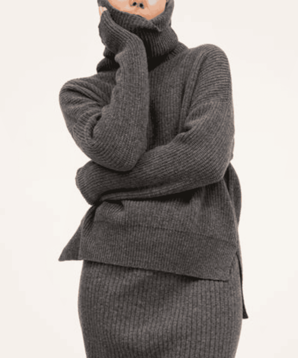 Uno de los rasgos distintivos de este jersey roller gris es su textura acanalada, que dibuja pequeñas “espigas” típicas de este tipo de tricot. Este relieve aporta dinamismo visual a la prenda y le confiere ese aire sofisticado pero informal que encaja a la perfección con el estilo urbano y relajado que tanto se lleva. Las aberturas laterales en el bajo, sutiles y muy prácticas, permiten que el tejido se adapte mejor al cuerpo sin perder su caída natural, aportando libertad de movimiento y un toque moderno al diseño.