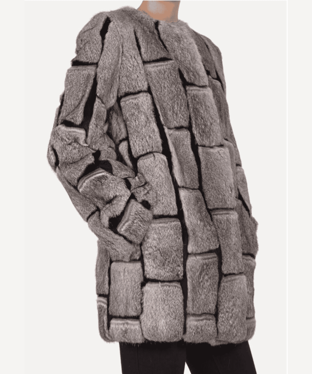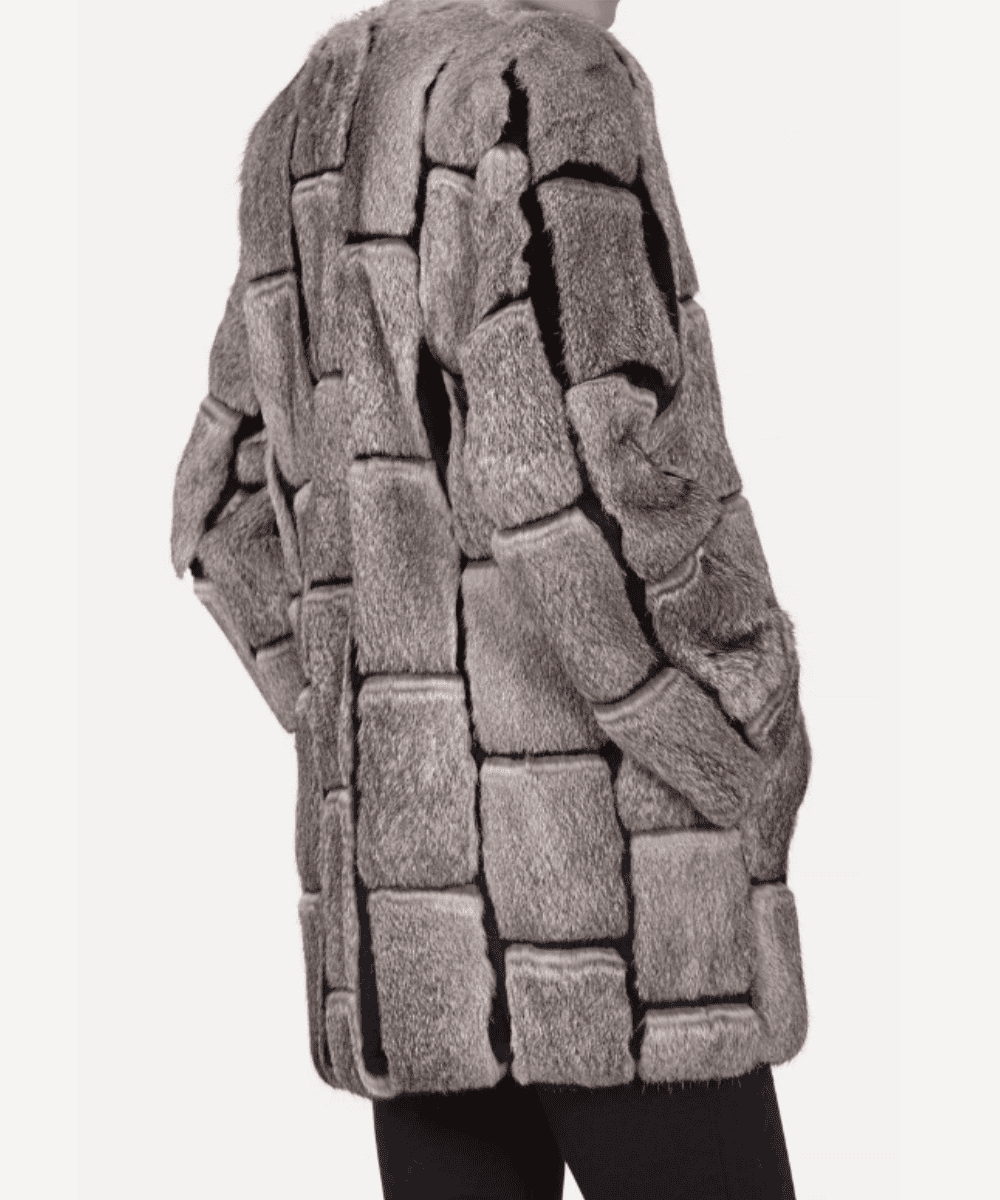 En cuanto a colores, este abrigo en tono gris con textura natural resalta por su modernidad y elegancia. El efecto visual de los paneles geométricos aporta un aire innovador y diferente, destacando entre los abrigos tradicionales de piel. Este detalle convierte al Leila Coat Bash en una prenda única y llamativa, perfecta para quienes buscan diferenciarse con un estilo original.