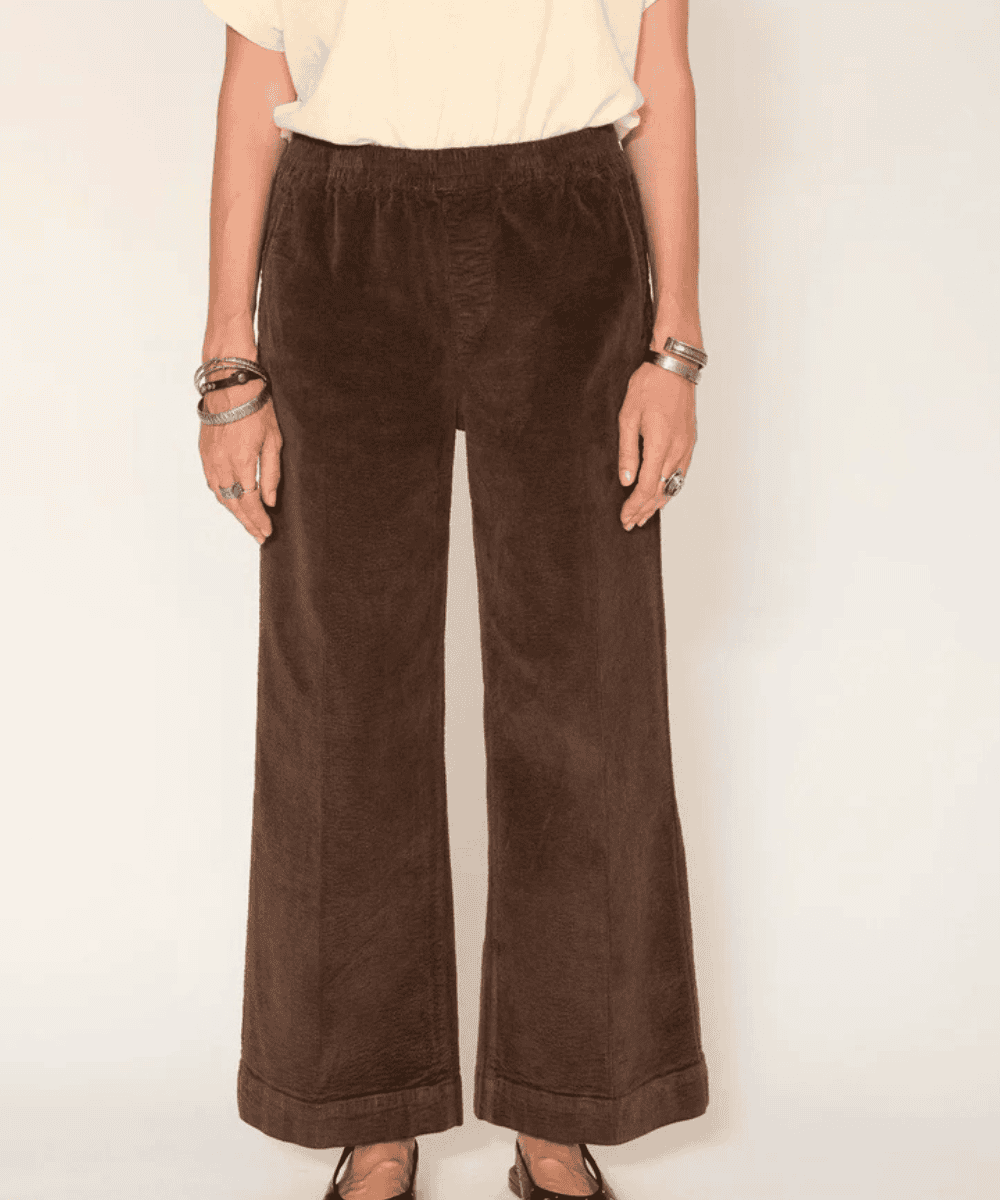 Confeccionados en pana , estos pantalones se distinguen por su tacto suave y durabilidad. Su corte holgado y relajado , junto con una cinturilla elástica , garantiza una sujeción óptima y una comodidad inigualable. Las perneras anchas permiten una gran libertad de movimiento, lo que los convierte en pantalones ideales para el día a día.